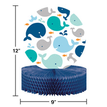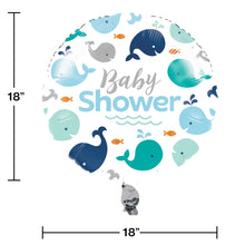 Each Blue Baby Whale Baby Shower Decorations Kit contains: 1 Blue Baby Whale Ribbon Banner (6" x 9'), 3 Blue Baby Whale Hanging Cutouts (36"), 1 Blue Baby Whale Mylar Balloon (18") and 1 Blue Baby Whale Centerpiece (12" x 9"). Each item features several baby whales with water shooting out of their spouts, all in different shades of blue. Make a huge splash at your baby shower. This kit can be used in coordination with our other Lil' Spout Blue baby shower supplies.