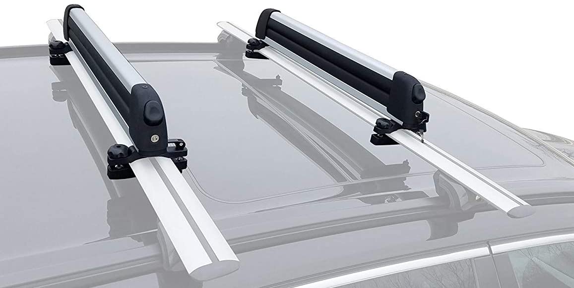 BrightLine ski/snowboard racks hold up to four pairs of skis or two snowboards. The racks mount to vehicle roof crossbars. The racks come with locks and quick release mounts.