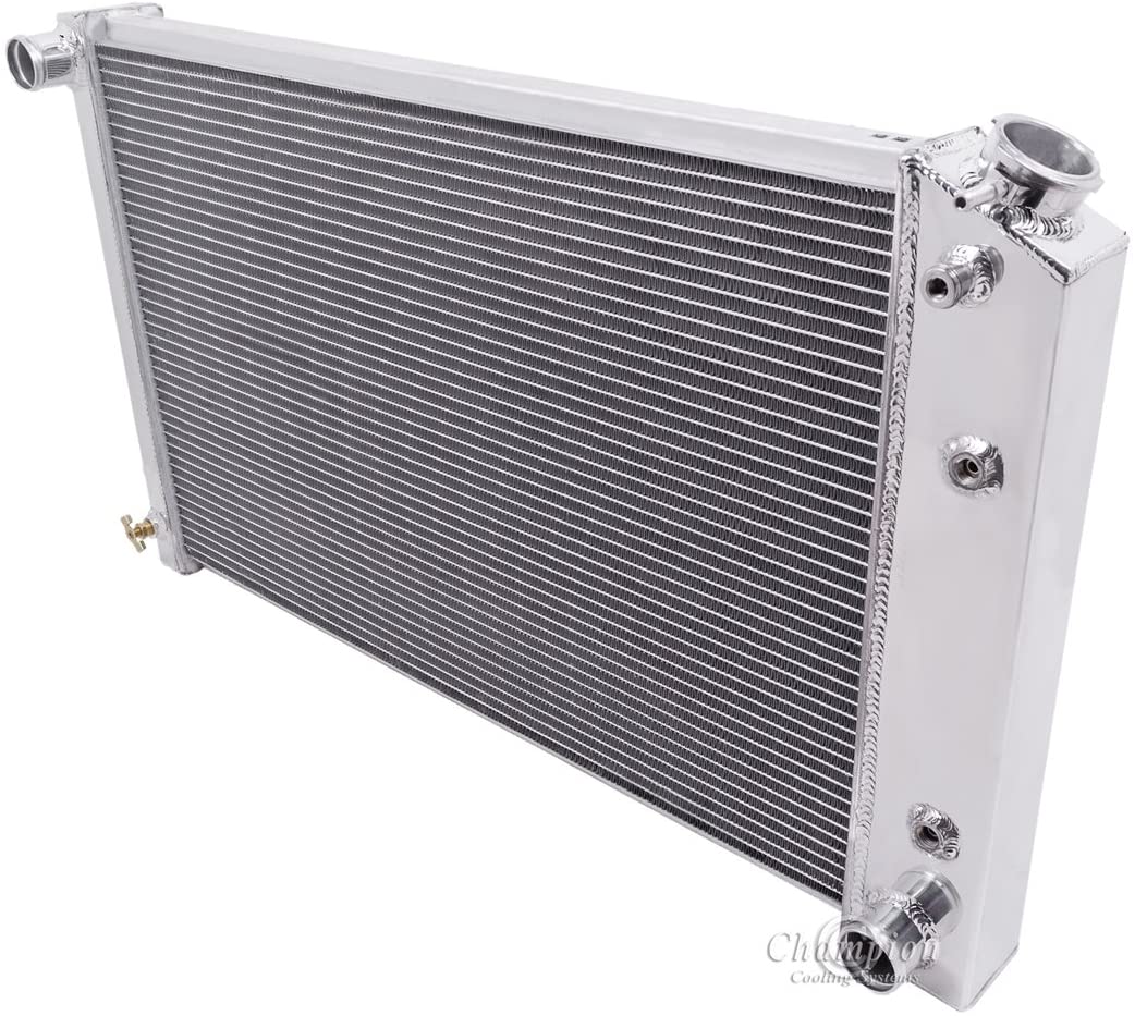 All Aluminum 3-Row Replacement Radiator by Champion Cooling Systems. Champion Cooling Systems and American Eagle Radiators are manufactured at their ISO certified facility. They are made to the highest of standards paired with unequalled quality precision and workmanship. The HIGHEST of aluminum grades available are used. All Champion radiators are constructed using 100% WELDED SEAMS BRAZED CORE TECHNOLOGY AND absolutely NO EPOXY. All Champion radiators come with a lifetime limited warranty and are made to install without any modifications using your origIn al mounts and fan shroud giving you the confidence you deserve. tems Part Number: radiators are manufactured at their ISO certified facility manufactured to the highest of standards paired with unequalled quality and precision workmanship. The HIGHEST grades of aluminum available are used In the manufacturing process.
