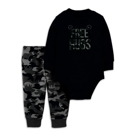- 2-piece outfit set includes one bodysuit and one pull-on pants