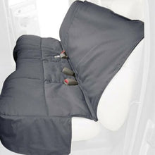 Polycotton Rear Row Gray Seat Protector (DCC4673GY) by Canine Covers®. Durable polycotton drill fabric breathes for your pets comfort. Machine washable. With Durable Water Repellency. Held in place by headrest straps and pillow pods. Travel-restraint and seatbelt friendly.