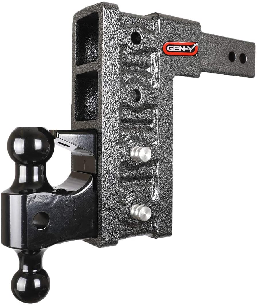 GEN-Y GH-624, 2.5" Receiver Adjustable Pintle Combo, Class V 21,000 lb 4-Receiver Slots,Drop Hitch, Drop/Raise 10",Multi use,Adjustable Hitch, Ball Mount Hitch