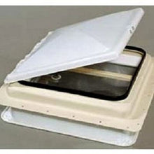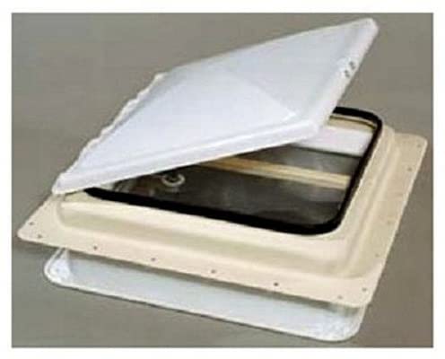 Non-powered, 14" complete roof vents with deep drawn metal bases painted off-white, white screen and white garnishes replace Jensen metal base standard mount vents. Fits roofs 1" to 2-9/16". Features radius corners, positive-seal weatherstripping, a unique integral hinge system lid and an acrylic UV resistant translucent lid.