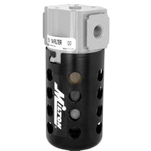 This 1/4" NPT Milton micro filter is supplied with a pre-assembled internal automatic overnight drain, which will operate when an air supply is shut down or when liquid has gathered in the filter bowl. The included 3 stage baffle system offers exceptional moisture removal. This micro filter includes a porous bronze sintered 40 micron filter element which allows less pressure drops and longer cleaning intervals. Micro filters remove harmful water or oil condensate, pipe scale, dirt and rust from compressed air systems and are used as pre-filters to coalescing type filters to ensure high efficiency and long element life. This polycarbonate bowl has a capacity of 5 ounces and is protected by a safety metal bowl guard. Maximum of 150 PSI and 48 SCFM.