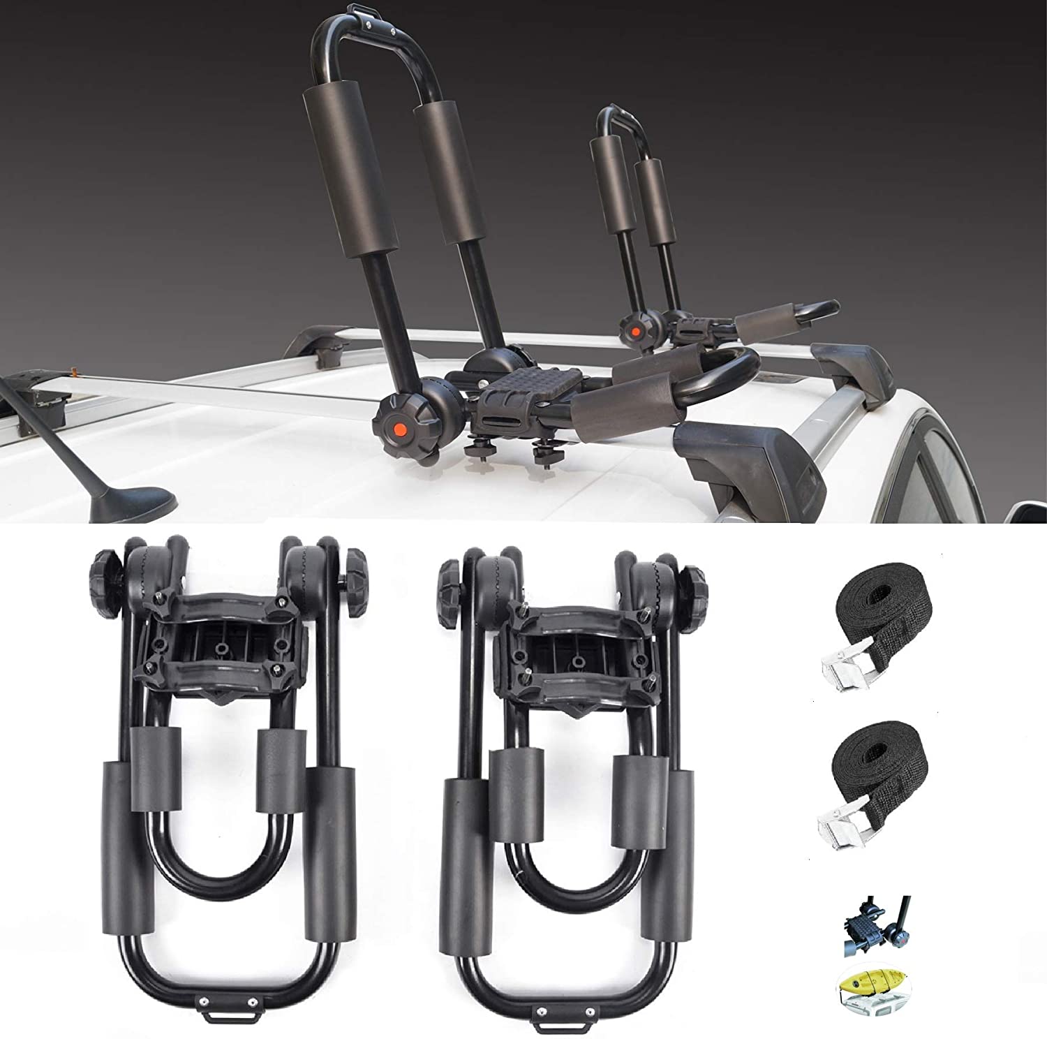 * Each carrier can be folded to fit different size (up to 34 inch wide) kayak