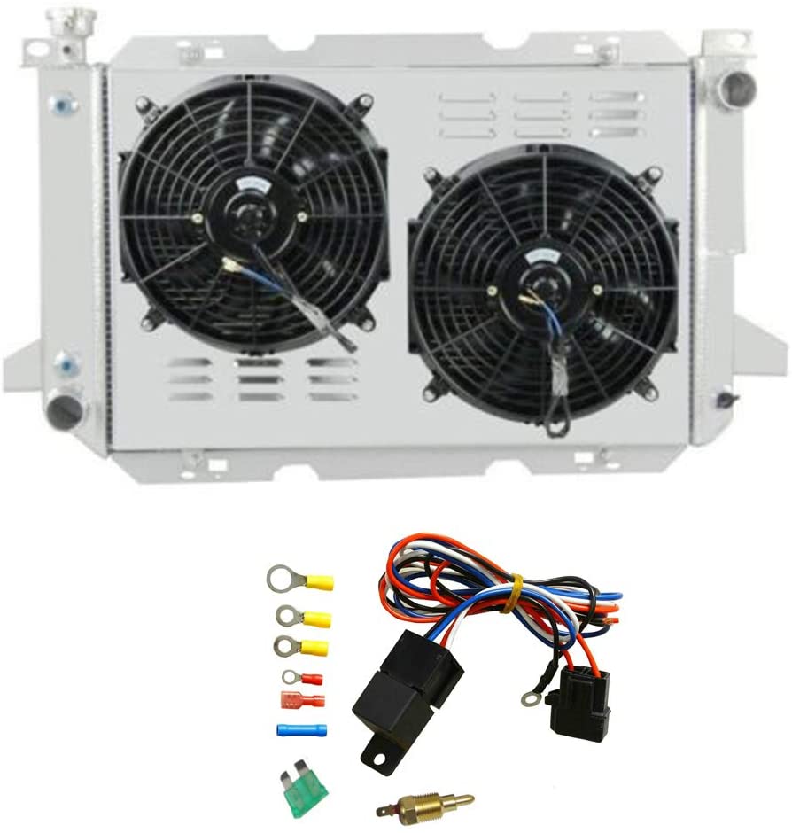 OzCoolingParts 4 Row Core Full Aluminum Radiator + 2 x 12" Fan w/Louver Shroud + Thermostat/Relay Wire Kit for 1985-1997 86 87 88 91 92 93 96 Ford F-150 F-250 F-350 Bronco V8 Engine