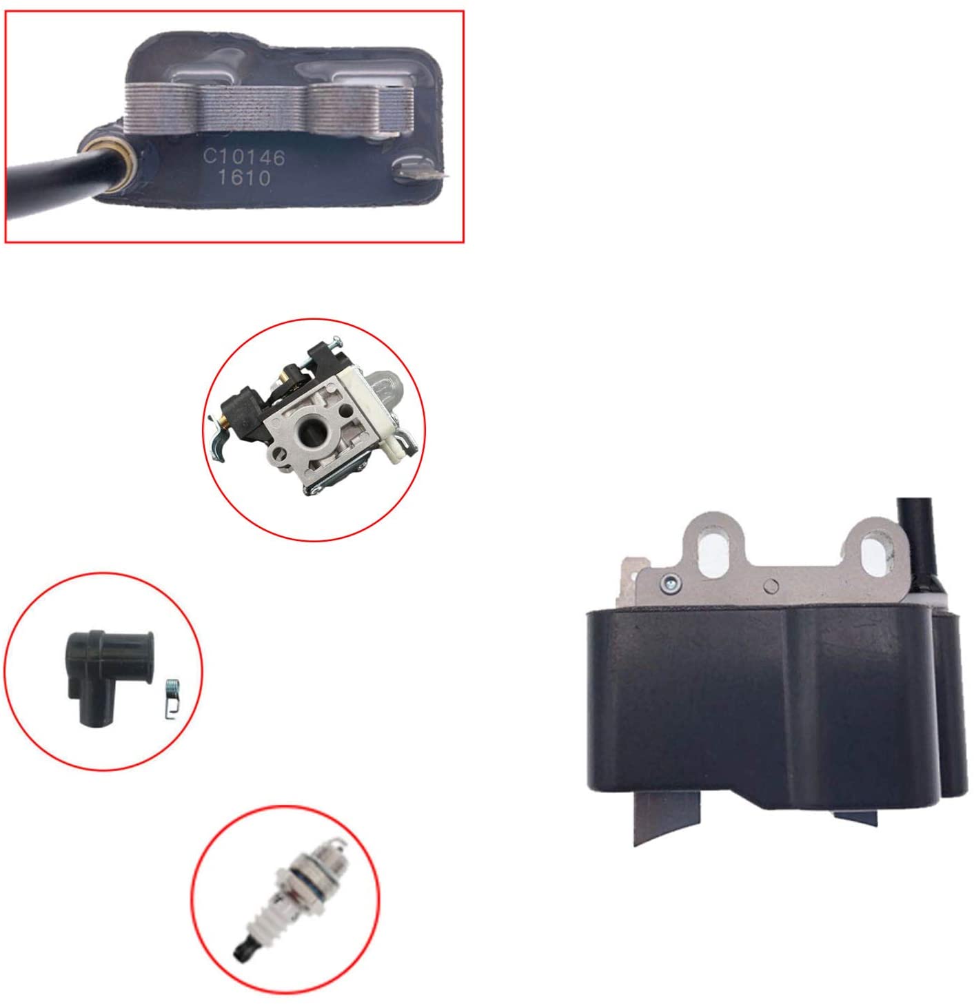 PARTSRUN PB-251 Carburetor Ignition Coil For ECHO PB-251 PB-255 PB-255LN ES-255 PB-265LN Blowers Carb RB-K85 Ignition Coil A411000290 ID#C10146 With BM6A Spark Plug,ZF271-KIT