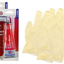 Bundle comes with 2 Permatex 81160 High-Temp Red RTV Silicone Gasket Maker (3 oz.) - Formulated for high-temp applications, or heavy-duty use (such as towing, etc.). Replaces almost any cut gasket. Makes reliable "formed-in-place" gaskets that resist cracking, shrinking and migrating caused by thermal cycling. Coats pre-cut gaskets to increase reliability. Temperature range -75°F to 650°F intermittent; resists auto and shop fluids. Plus comes with 2 pairs of CLC latex gloves, 5 mil. industrial grade, pre-powdered, disposable gloves with rolled cuffs, that can be worn on either hand.