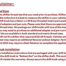Speed Dawg's Ford Mustang Running Pony shift knob is a premium quality, 2-1/8" diameter shift knob with a 6 Speed and Reverse Upper Left shift pattern in white and black. Displaying the Official Ford Mustang Running Pony logo on both sides, it's graphics are subsurface (not just etched or engraved) and will not wear off. The Running Pony logo faces to the left on both sides of the shift knob as required by Ford Licensing. Speed Dawg's shift knob is comprised of specially formulated high-impact polymer resin specifically designed to meet performance level torque and temperature requirements. This knob has 16mm x 1.50 Brass threads and is packaged with 2 additional adapters and jam nuts in sizes 12mm x 1.25 and 12mm x 1.75. 2005 to 2014 Mustang vehicles with a factory shifter will require a Mustang Boot Retainer (sold separately) to complete the installation. Weight is 4 ounces. Made in the USA.
