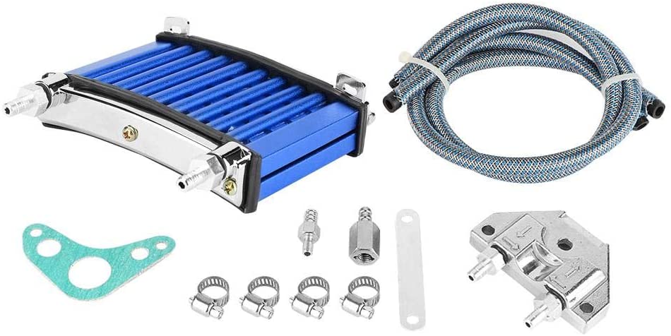 Suuonee Oil Cooler Kit, Universal Motorcycle Engine Oil Cooler Cooling Kit Motor Aluminum Motorcycle Fit for 125cc