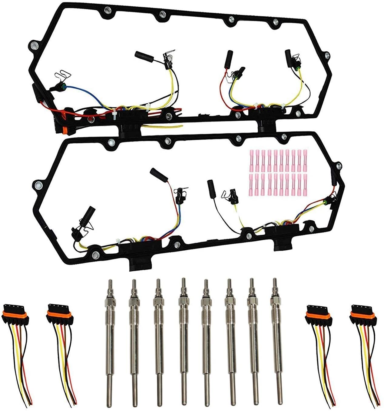 yjracing Valve Cover Gaskets + Injector Glow Plug Harnesses + 8 Glow Plugs Kit Fits for 7.3L Powerstroke Diesel 1994-1997 F4TZ-9D930-K F4TZ-6584-A 615-202