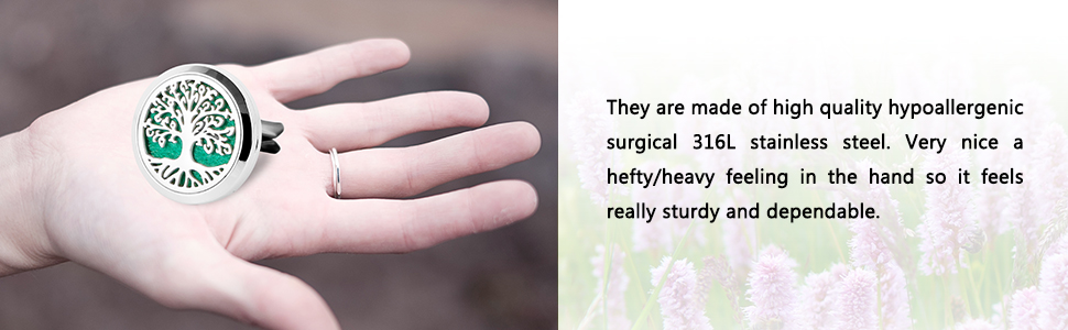 Purify the air you breath while driving by clipping it onto the vent of your car so that the oil can be gently blown throughout your vehicle during any season. The durable easy open silver locket is rust resistant and features a beautiful 30mm diameter Tree and Cloud design symbolizing Strength and Development that functions as an essential oil diffuser.