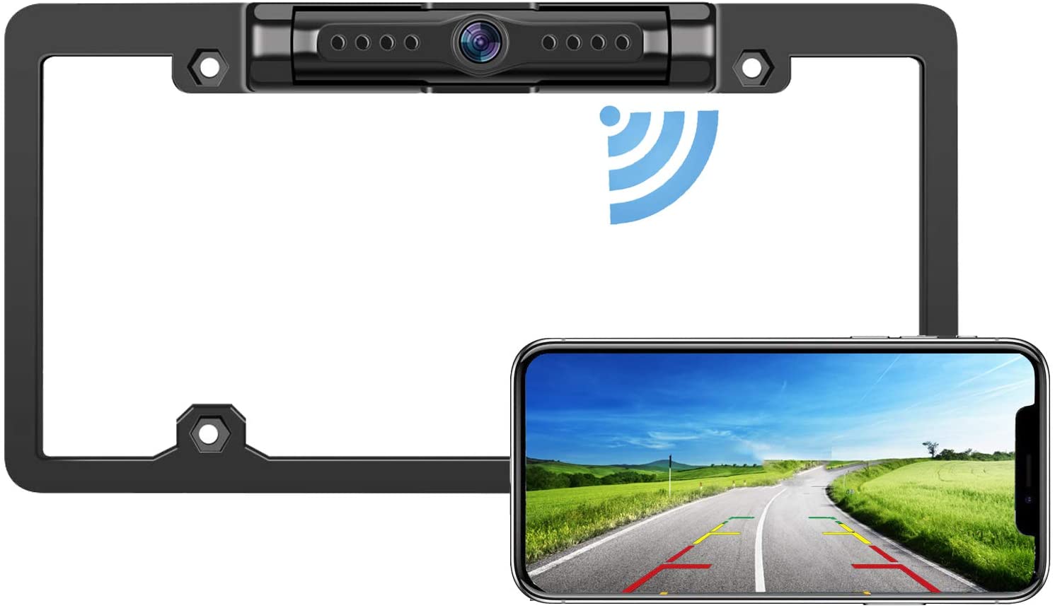 LeeKooLuu WiFi Digital Wireless Backup Camera for iPhone/Android, IP69 Waterproof Car License Plate Frame Camera for Cars,Trucks,SUVs Pickups,Vans LK8