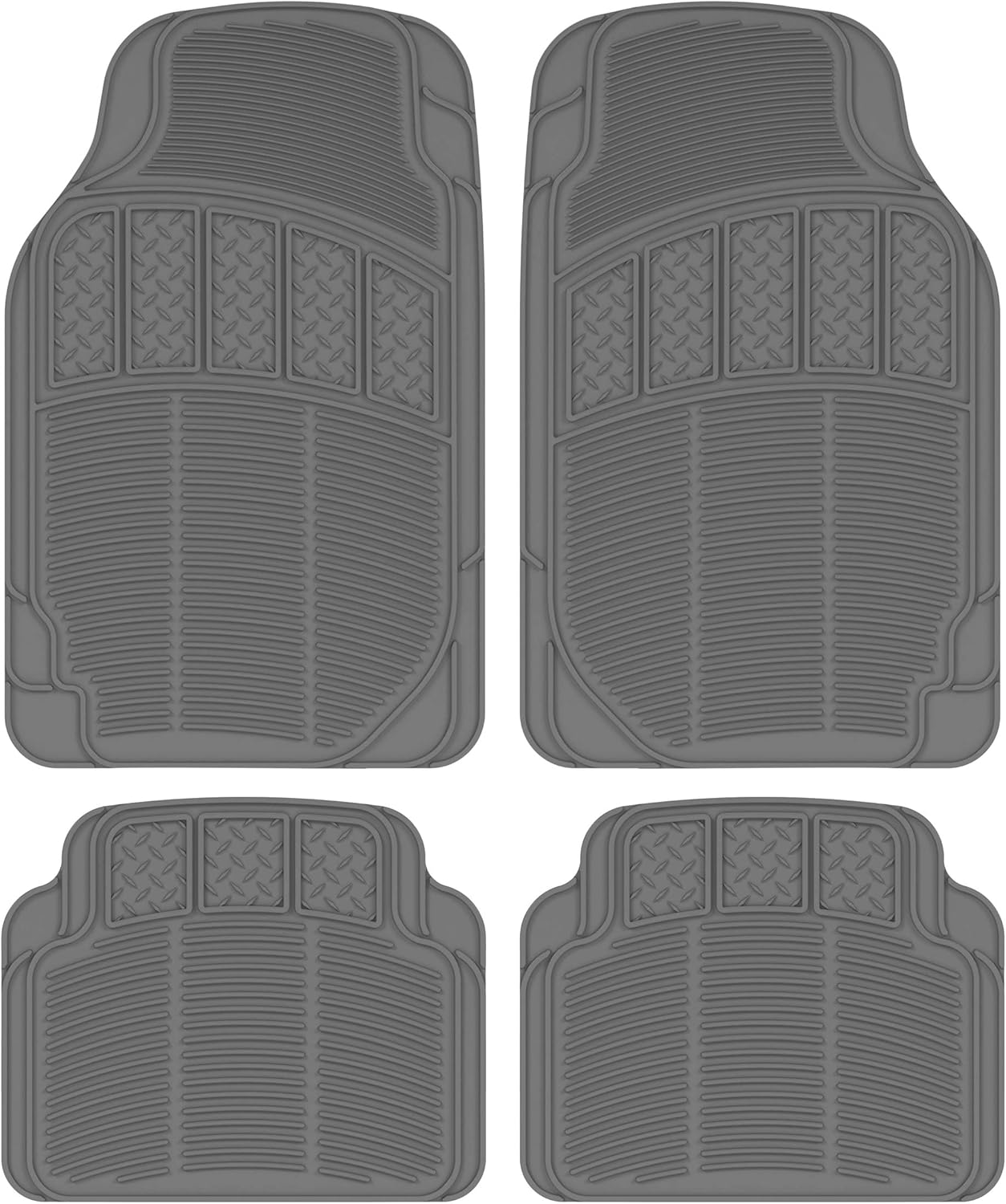 carXS Gray All Weather Rubber Car Floor Mats Heavy Duty Ridges Diamond Grid