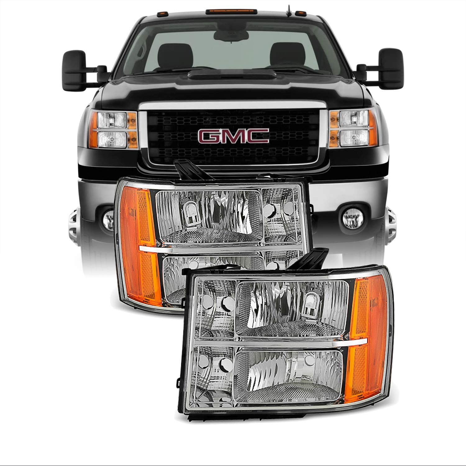 This is a 100% brand new pair of Headlights Replacement Assemblies in Polished Chrome Housing With Crystal Clear LensCompatible With: 2007-2013 GMC Sierra 1500 2007-2014 GMC Sierra 2500...