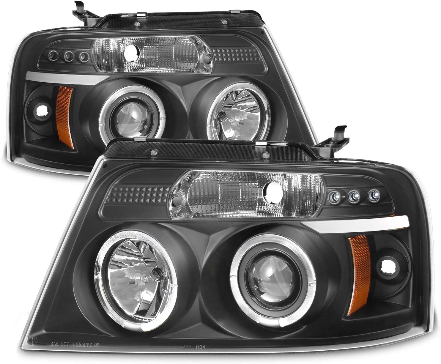 For Ford F150 F-150 Pickup Black Bezel Dual Halo LED G2 Projector Headlights Front Lamps Replacement