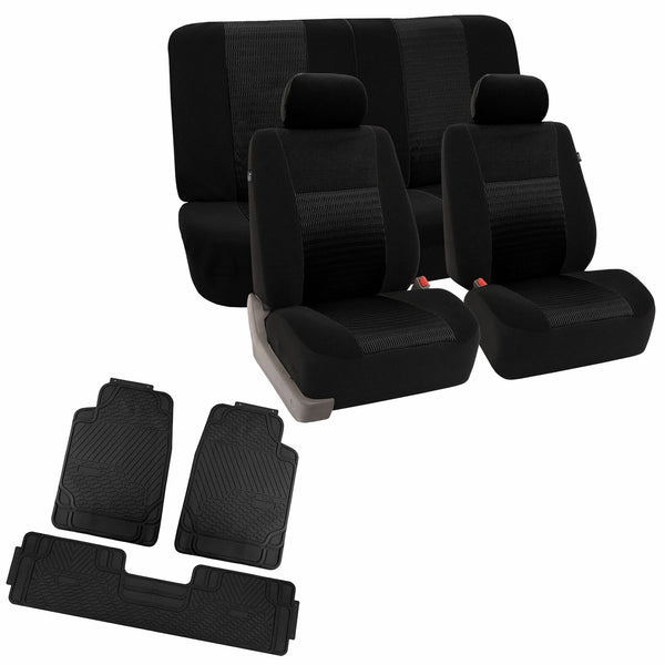 eBay Full Interior Set Black Seat Covers Auto Car w/ Black All Weather Floor Mats Complete Interior Combo Set includes: Two Airbag Compatible Front Bukcet Seats Covers, Rear Split Bench Cover, Headrest Covers with All Weather Rubber Floor Mats....