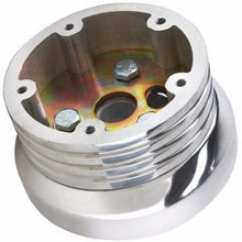 DESCRIPTION: - 14" (13.75) Billet Aluminum Steering Wheel - High Polish Aluminum Finish - Wheel Features Black Leather-Grained Vinyl Front Grip and Aluminum Back Grip with Finger Grooves. - Dish Depth: 1 - 3/4" - Uses Standard 5 Bolt Pattern: 1.6" Hole to Hole, 2.75" BC. - Includes Chevy Bow Tie Engraved Aluminum Horn Button - Billet Aluminum Adapter Included - Bolts Directly to Stock Column and Late Model GM Aftermarket Columns.
