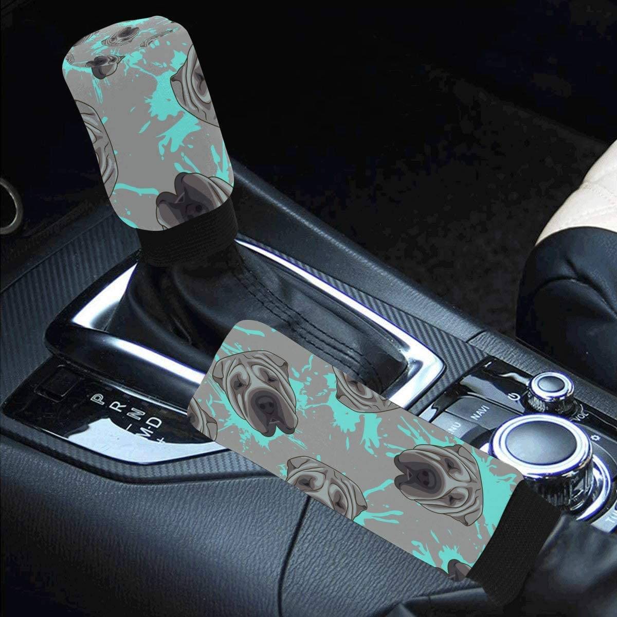 CSHENG Automobile Car Shift Knob Cover and Handbrake Gear Shift Cover-2pcs/set Universal Fit for Women Men, Decorative Dog Gray Shar Pei Muzzles for SUV Sedans Trucks Vans