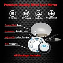 2.2 piece packaged, newest upgrade 360 degree rotate + sway adjustabe, maximize your view with wide angle in car. All convex spot mirrors are equipped with tiny adjustable swivel mounting bracket for easy installation.