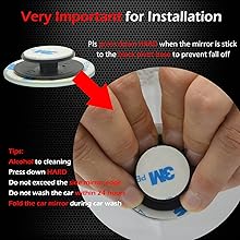 1.Pls clean your original car side mirror with alcohol or some other cleaning products. Press down HARD when the mirror is stick to the black pivot base, it is more firmly stick and will not fall off from the pivot base.