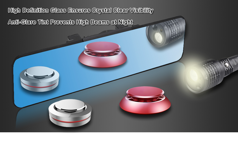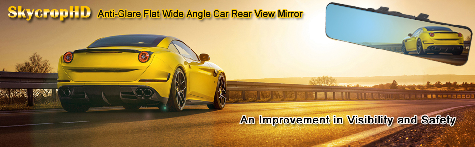 SkycropHD Anti Glare Car Interior Rear View Mirror, Clip on Wide Angle Rearview Mirror to Eliminate Blind Spots – Flat, Blue,11.2in (285mm)