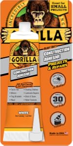 Even More from Gorilla Gorilla Heavy Ultimate Duty Construction Adhesive, 9 ounce Cartridge, White Gorilla Super Glue Gorilla Brush & Nozzle Gorilla Clear Grip Gorilla Hot Glue Sticks Heavy Duty Spray Adhesive