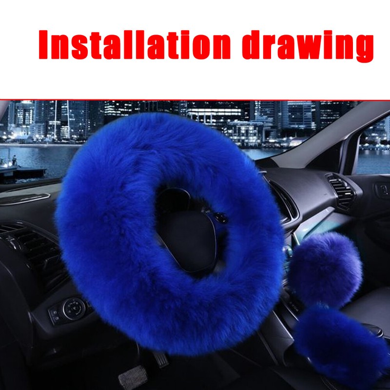 eBay 3pcs/set 36-38cm Fur Car Steering Wheel Cover Mature Gem Wool Furry Fluffy Thick 3pcs/set Fur Car Steering Wheel Cover Gem Blue Color Wool Winter Essential Universal Furry...