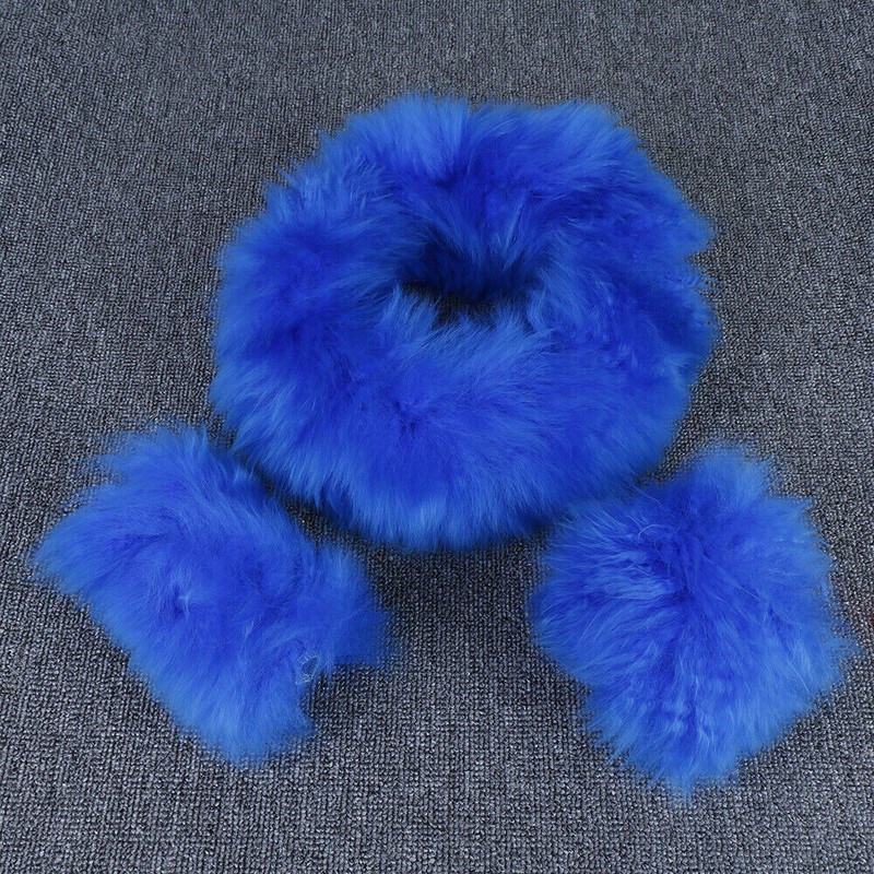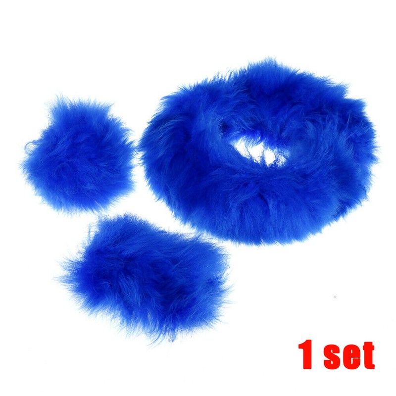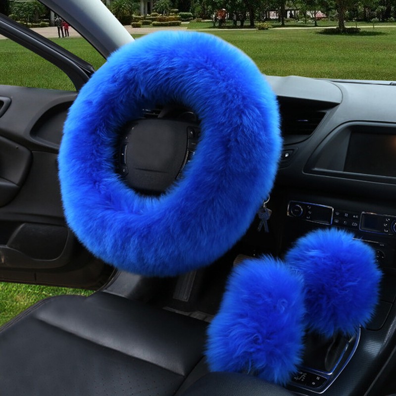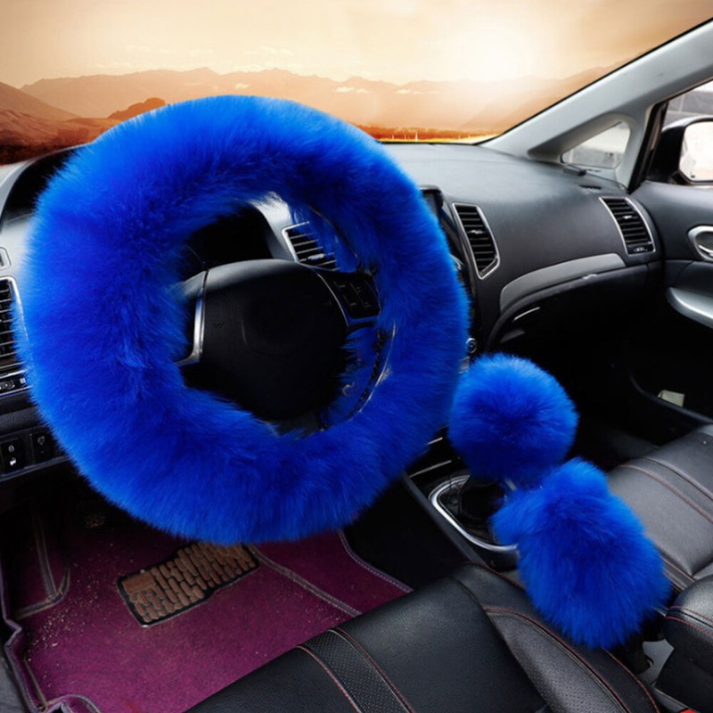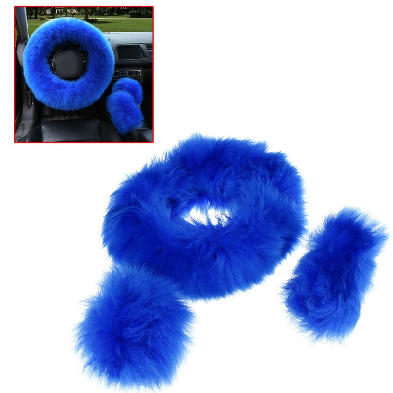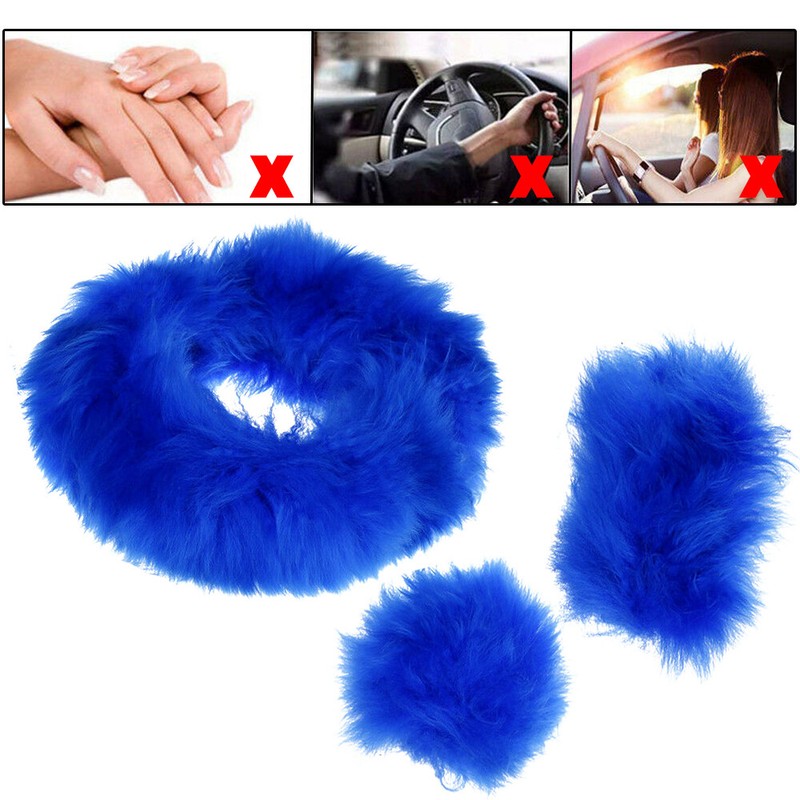 3pcs/set Fur Car Steering Wheel Cover Gem Blue Color Wool Winter Essential Universal Furry Fluffy Thick Faux Three Season