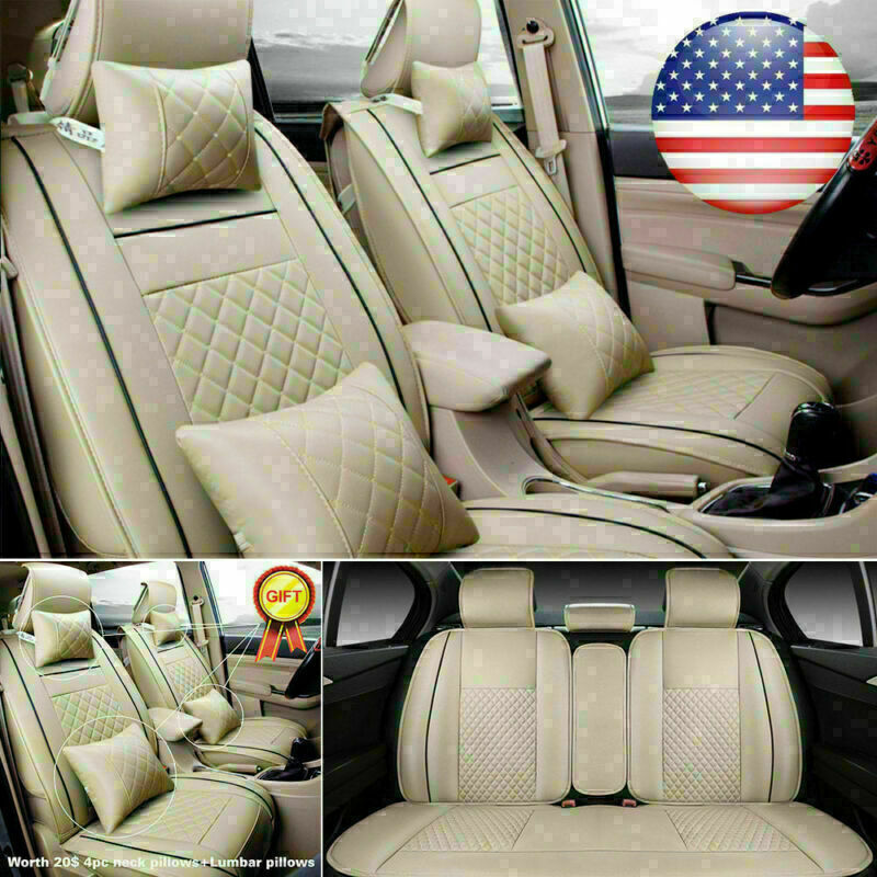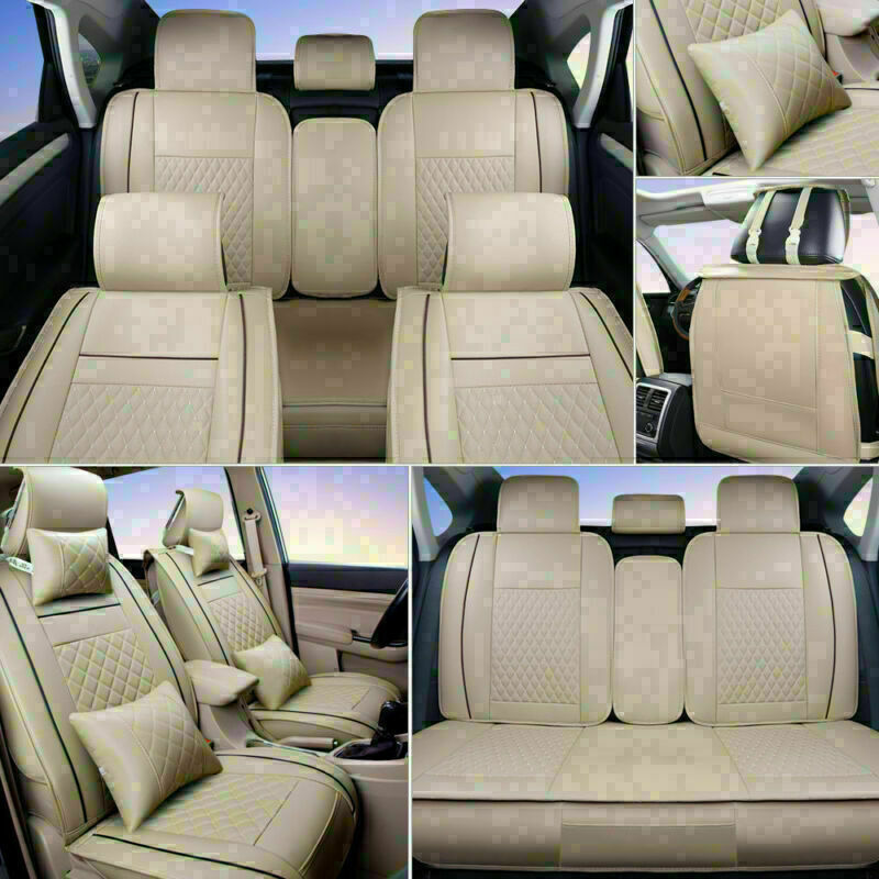 100% PU Leather Luxury Car Seat Covers Set Protector Universal 5-Seats Cushions