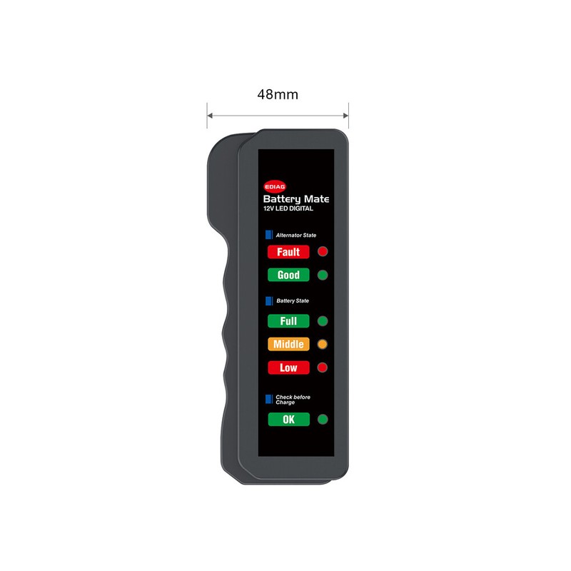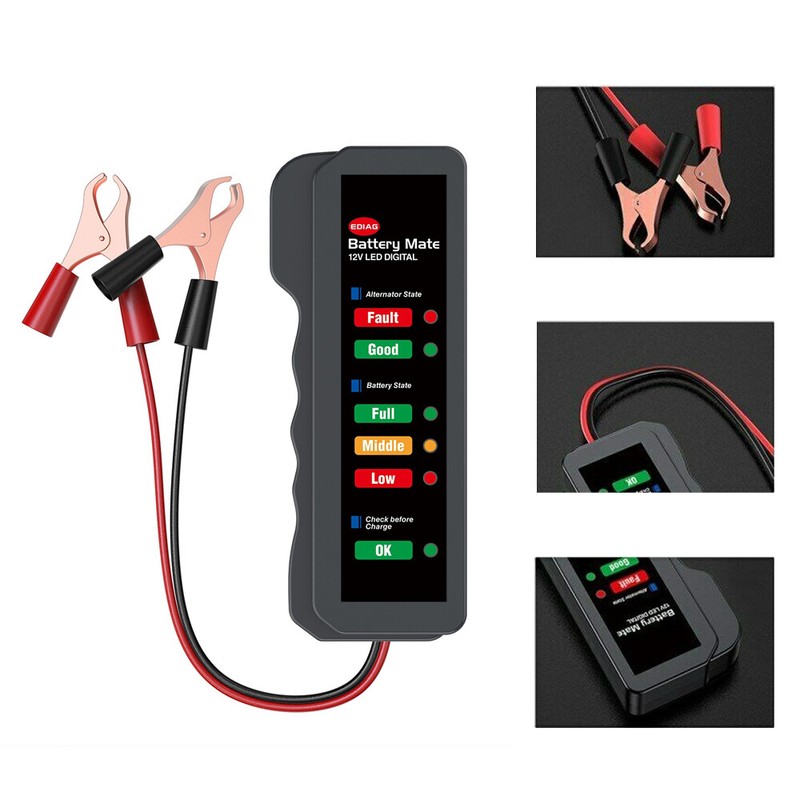 Feature: 6-LED display, clearly present the alternator and battery state.Two testing clips for safe and easy operation. Small size and light weight, convenient to carry. Fit for all 12 V car, motorcycle battery etc. With a good chip inside, not easy to get hot on the surface. 6 Led Lights: Alternator state First light (Red): Fault Second light (Gree): Good Battery State First light (Green): Full Second light (Yellow): Middle Third light (Red): Low Check Before charge First light (green): OK Specifications: LED quantity: 6 (2 red, 3 green, 1 yellow) Material of wire: 0.06 square millimeter copper Max. voltage / current: 12V / 15A Length of wire: 14.2inchs/36.2cm Using: Improve driving safety Material : Plastic, Copper Color : Gray Product size (L x W x H) : 4.7 x 1.9 x 0.75inches/ 12 x 4.8 x 1.9 cm Package size (L x W x H) : 5.6 x 2.2x 1.4 inches / 13.5 x 5.6 x 3.6 cm Packing list: 1 x 12V battery tester 1 x user manual