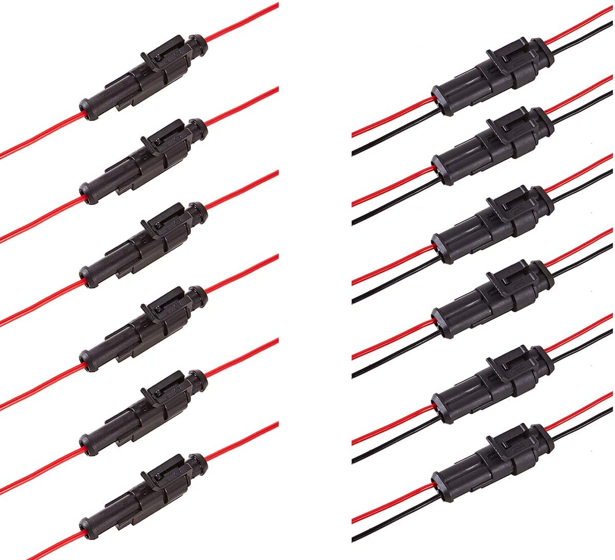 6 Kit 1 Pin and 6 Kit 2 Pin Car Waterproof Electrical Connector Plug with Wire for Car Motorcycle Quad Bike Truck Boat Marine