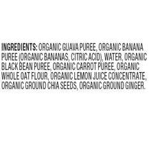 Ingredients: Ingredients: Organic Guava Puree, Organic Banana Puree (Organic Bananas, Citric Acid), Water, Organic Black Bean Puree, Organic Carrot Puree, Organic Whole Oat Flour, Organic Lemon Juice Concentrate, Organic Ground Chia Seeds, Organic Ground Ginger.