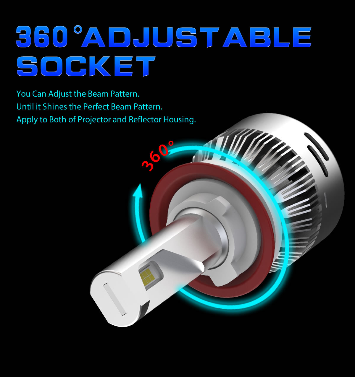 * The mounting collar is 360° adjustable for freely rotate, it's softly suitable for different headlight housing with different angles, and the light pattern could be easily adjusted, no blinding the upcoming traffic or driver.
