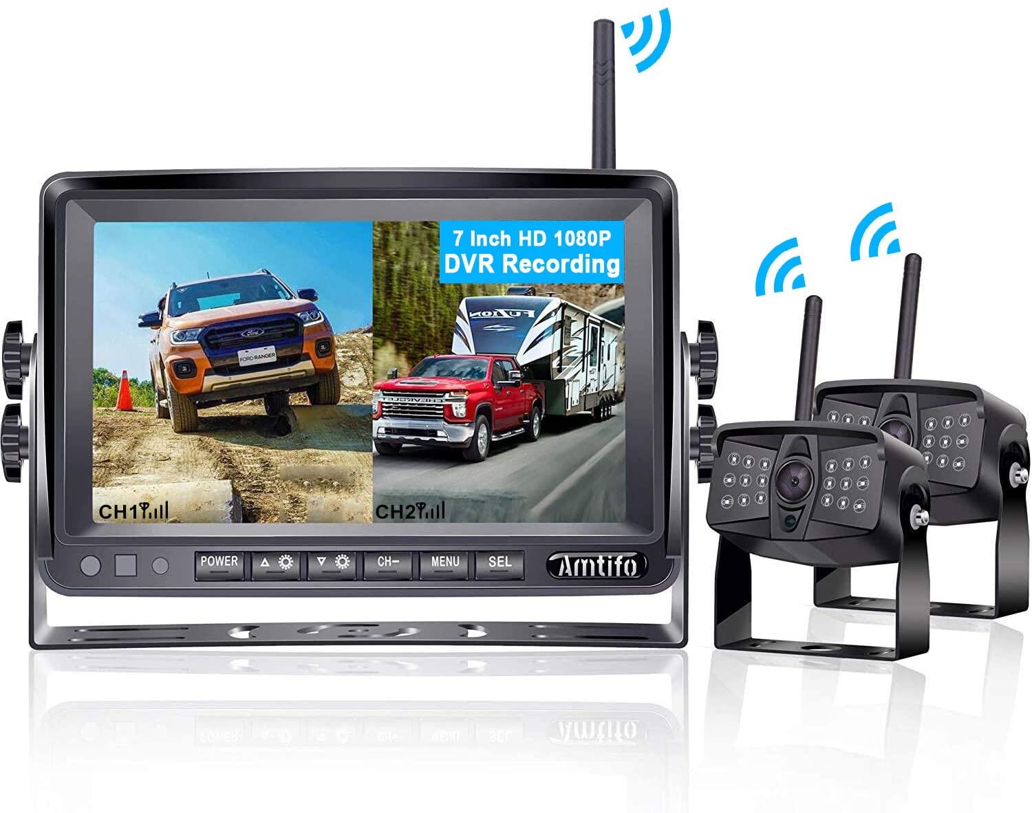 AMTIFO A9 FHD 1080P 7 Inch RV Backup System with 2 Rear View Camera, Support Split/Quard Screen for RVs,Trailers,5th Wheels,Motorhomes,DVR High-Speed Observation System
