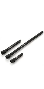 Set Includes 1/2-inch drive: 3-inch, 5-inch and 10-inch Impact Extension Bars 3/8-inch drive: 3-inch, 5-inch and 10-inch Impact Extension Bars 1/4-inch drive, 3/8-inch drive, and 1/2-inch drive 3-inch adapters with a 1/4-inch shank/driver 3/8-inch drive (F) to 1/4-inch drive (M) reducer, 1/2-inch drive (F) to 3/8-inch drive (M) reducer, 1/4-inch drive (F) to 3/8-inch drive (M) adapter, and 3/8-inch drive (F) to 1/2-inch drive (M) adapter 1/4-inch, 3/8-inch, and 1/2-inch drive Impact Universal Joints 1/4-inch F x 3/8-inch M, 3/8-inch F x 1/2-inch M, and 1/2-inch F x 3/4-inch M Low Profile Impact Socket Adapters