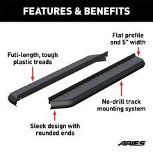 For some, its more than just a drive. Its about definition -- finding the rush that comes with your hands on the wheel and your foot on the gas -- and it starts by stepping into your vehicle with confidence. ARIES AeroTread running boards give new definition to your drive with their sleek design, full-length treads and flawless finish. They feature unencumbered aluminum construction and a custom contour to redefine your look and offer a solid step up. Made specifically for todays crossover and SUV, ARIES AeroTread running boards are marked for their aerodynamic look and lightweight build. They are constructed from an extruded aluminum base, making them strong and impervious to the elements. Each set of running boards features sleek, curved edges with tapered ends to seamlessly blend with the body of your vehicle. To give you the exact, customized look you want, AeroTread running boards come with one of two front-trim finish options: polished stainless steel or black carbide powder-coated stainless steel. They are also equipped with a 5" wide, hard plastic step pad that runs the entire length of the board, providing a non-skid surface no matter where you place your foot. AeroTread running boards install using a track mounting system to attach vehicle-specific brackets, and pre-existing holes in the vehicles frame are used to eliminate drilling, speed up installation and ensure stable footing (NOTE: Mounting brackets are sold separately, see the application information to determine which brackets and boards fit your vehicle). The mounting brackets are made from steel and are coated in a powder coat finish for long-lasting dependability. Whatever road you choose, define your drive with ARIES AeroTread running boards. Aries Automotive hit the road running in 1997. We have since become an industry leader in providing the latest truck and SUV models with unparalleled tubular steel, aluminum, carbon fiber and ABS plastic products. We have furthered our success by recently expanding our operations in San Antonio, Texas, Harbor City, California, and Richmond, Canada. This has enabled us to meet the increasing demands for our unique and innovative products with on time delivery, at competitive rates. When searching for the latest model application, or simply a top quality automotive aftermarket product, call on Aries Automotive. |