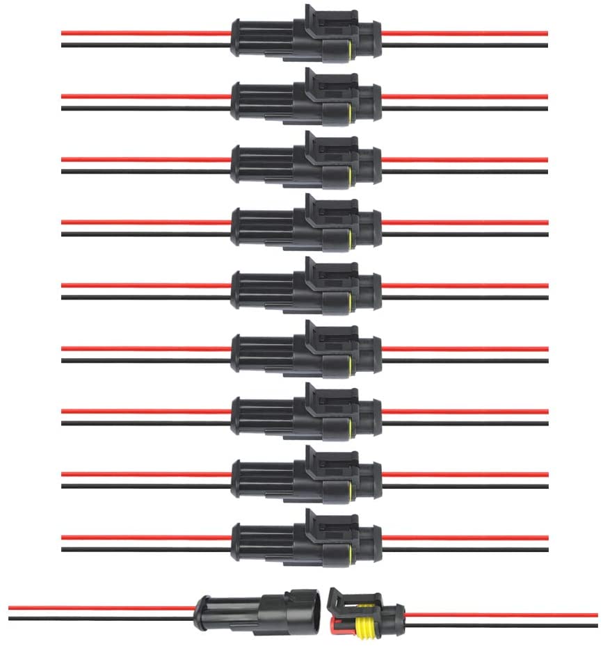ATPWONZ 2 Pin Way Car Waterproof Electrical Connector Plug with Wire AWG Marine Pack of 10
