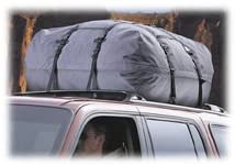 This roof top cargo carrier has a large capacity to hold plenty of goods for when you are going to 'Hit the Road'. Whether it be camping with the family, transporting goods when moving or packing the kids off to the college dorm. The construction is heavy duty 600 Denier nylon which is durable water resistant material with sewn seams. The carrier easily attaches to the roof top racks. It folds flat for easy storage when not in use.