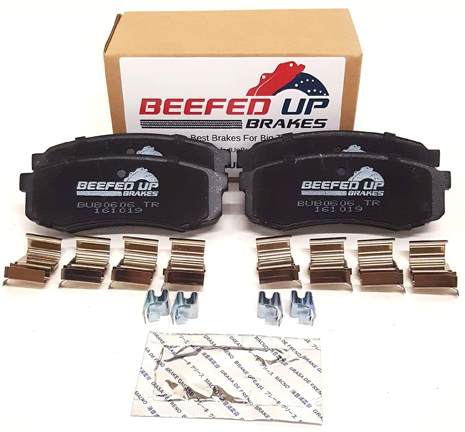 Beefed Up Brakes Premium Trail Rated Rear Ceramic Brake Pad Kit w/hardware and grease Compatible with Toyota 4Runner, Toyota FJ Cruiser & Toyota Land Cruiser