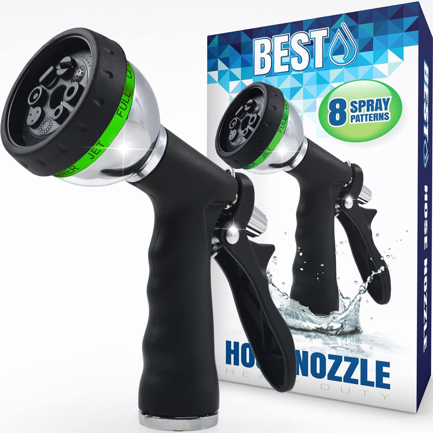 BEST Garden Hose Nozzle (HIGH Pressure Technology) - 8 Way Spray Pattern - Jet, Mist, Shower, Flat, Full, Center, Cone, and Angel Water Sprayer Settings - Rear Trigger Design - Steel Chrome Design (1 Pack)
