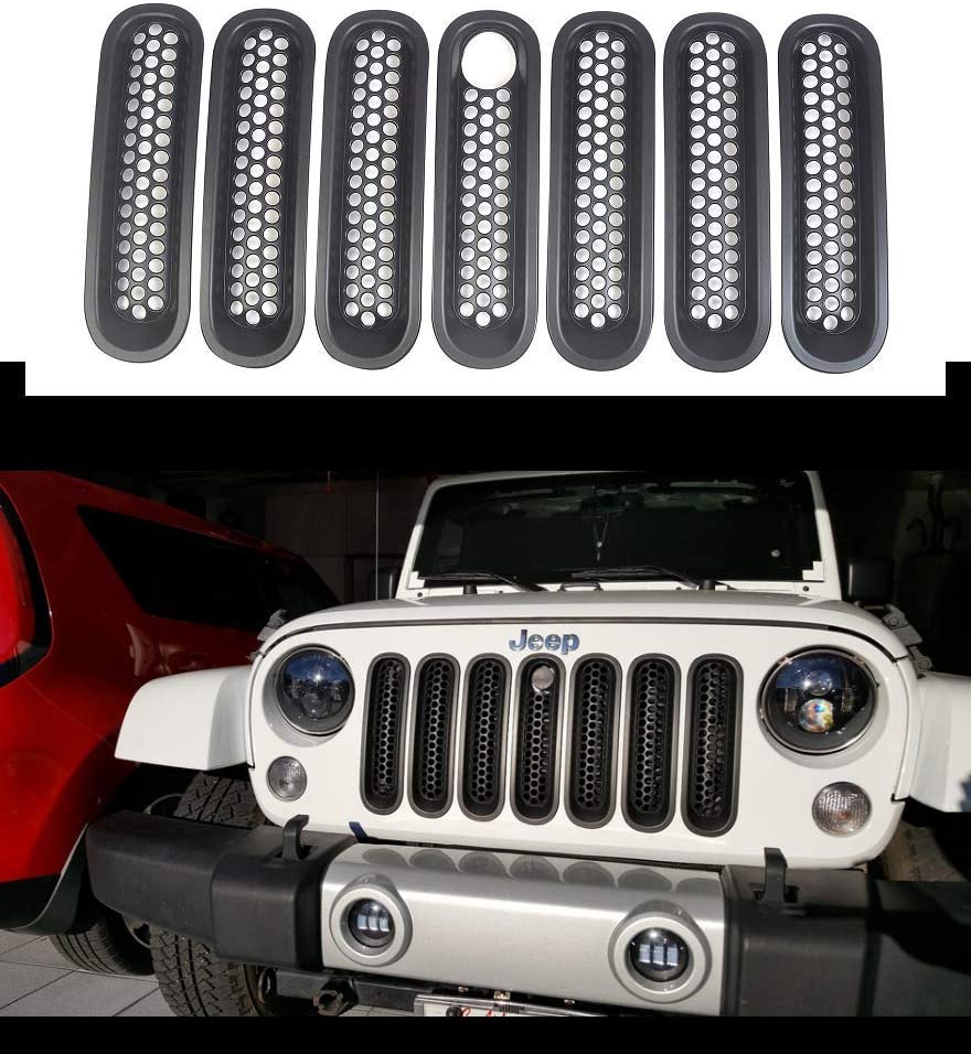 Bolaxin Black Matt Front Grill Mesh Grille Insert with Key Hole Fit Hood Lock Compatible for Jeep Wrangler Jk Rubicon Sahara & Unlimited 2007-2015 -7pcs (Mesh Grille Insert with Key Hole)