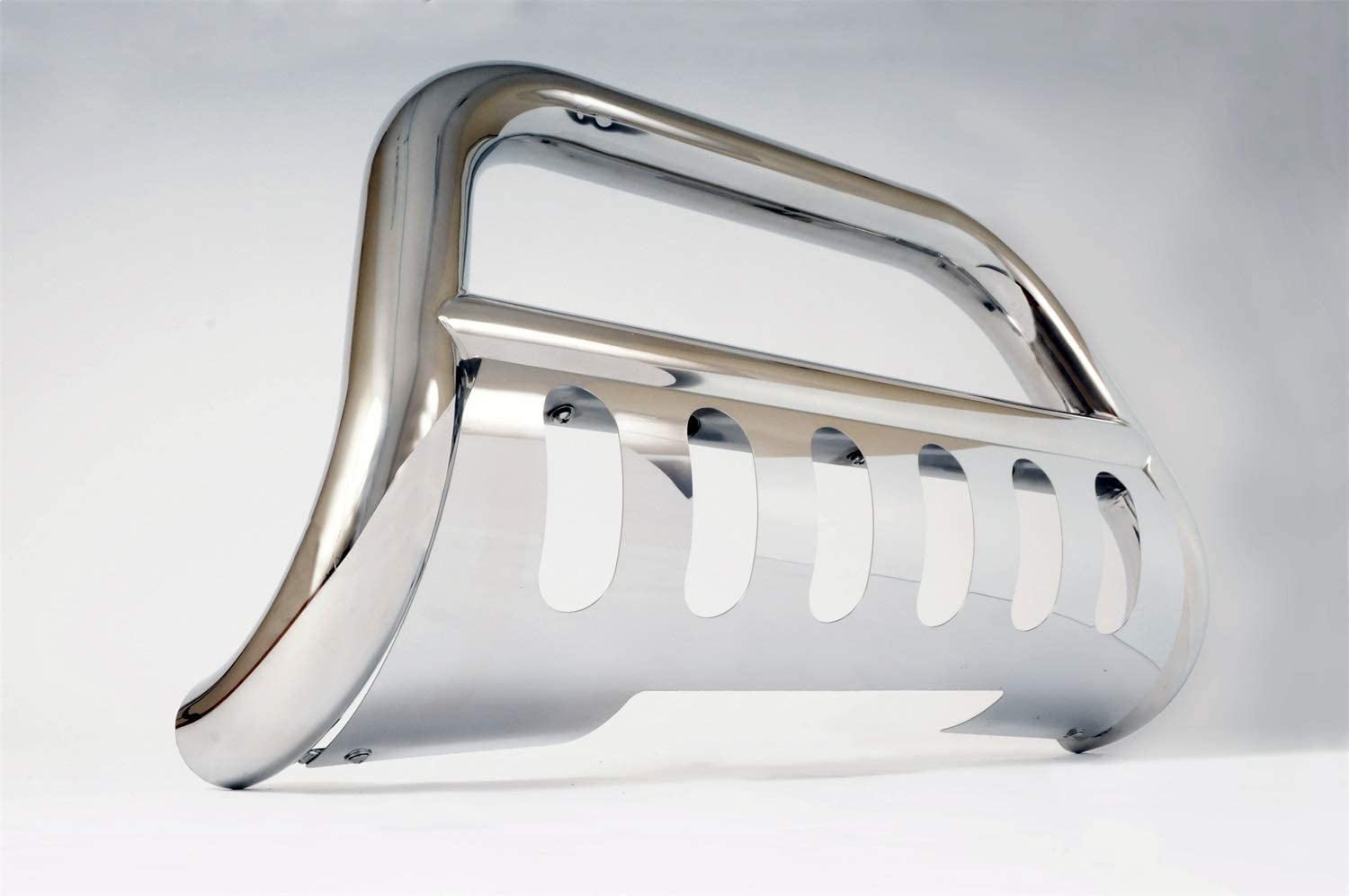 Dee Zee Sport/Bull Bar Grill guard. 3" steel tubing, creates strong but subtle appearance. Polished stainless steel provides strength and durability. Comes with removable skid plate. Factory drilled holes if you would like to add auxiliary lights. Quick, no-drill installation.