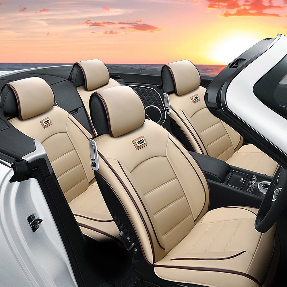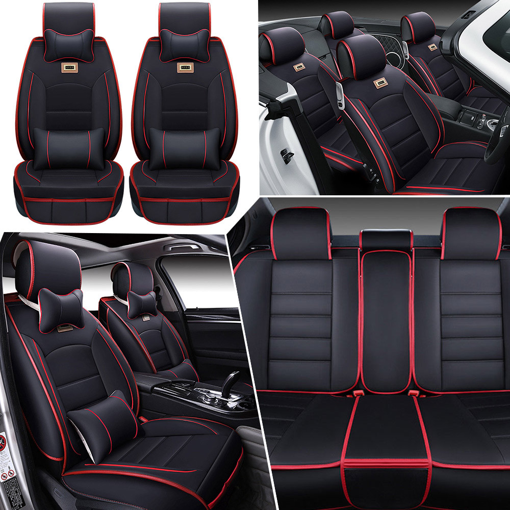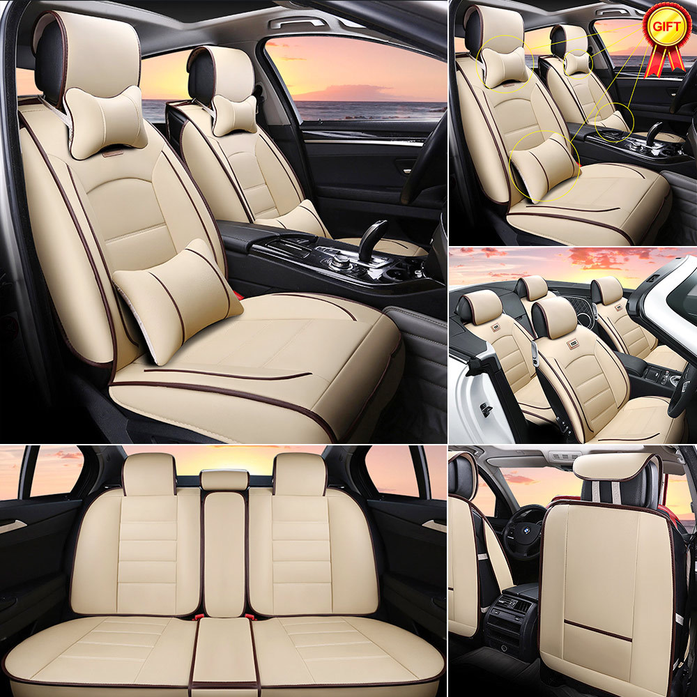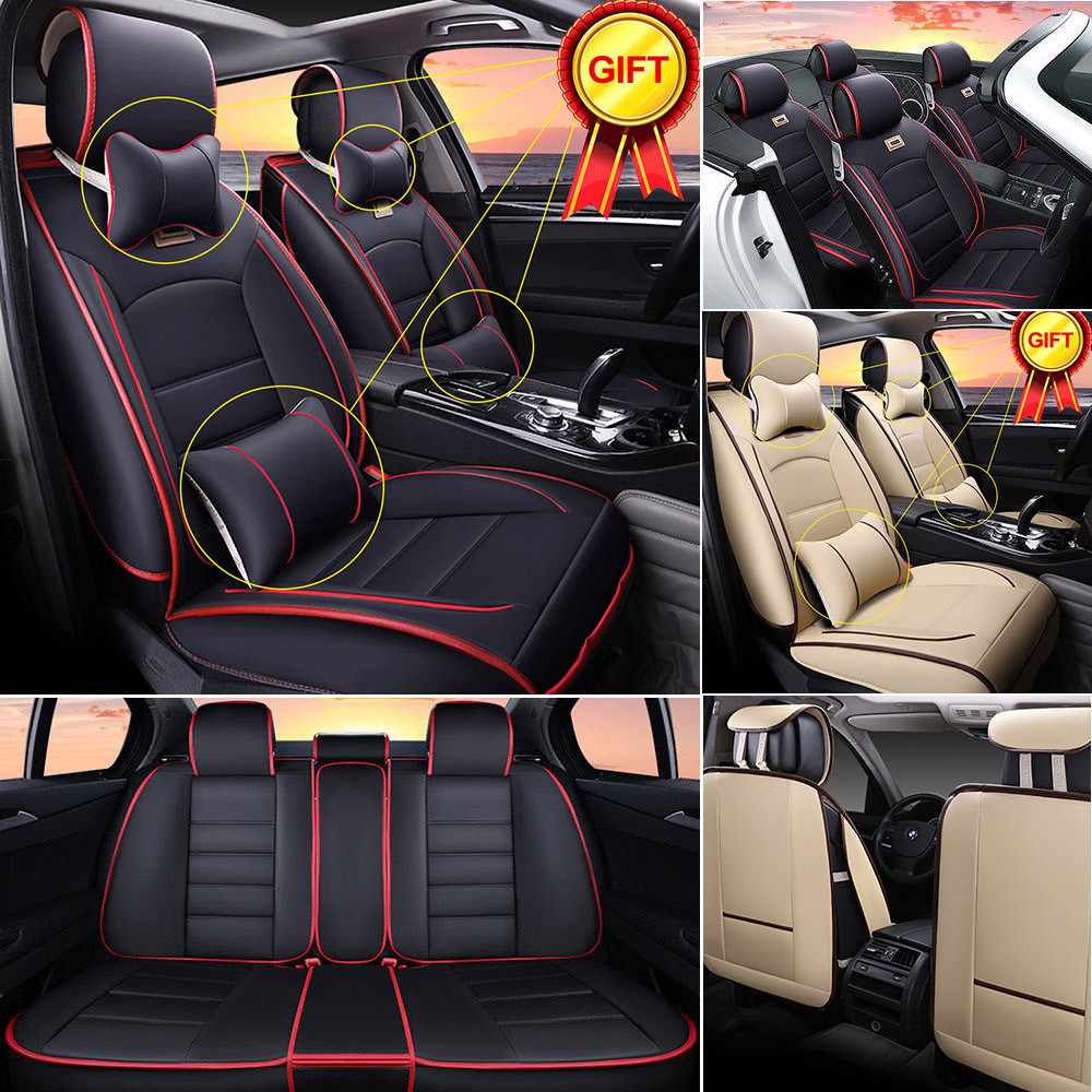 Deluxe PU leather Car SUV Seat Cover Full Set Front+Rear Cushion 5-Seats +Pillow