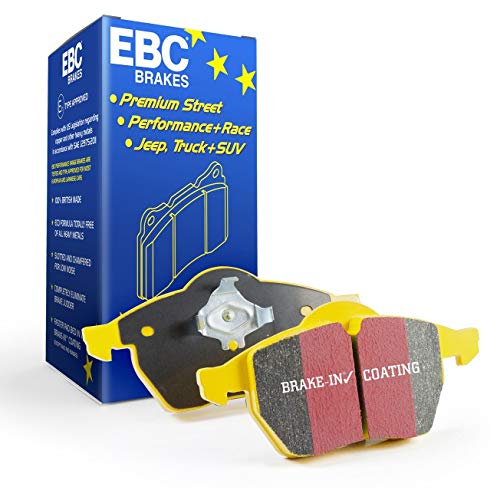 The new EBC Yellowstuff compound is essentially a race pad but with a big difference in that it works from cold and can be safely used on the highway. If you want the ultimate in high friction braking this is the pad to choose. Brakes feel superb from first touch of the pedal and stay effective up to race temperatures. Maximum stopping is prime requirement and for short duration track use. Its dust rating is similar to OEM parts. All pads come with edge chamfers, center line slots, noise reduction shims and OEM hardware as needed. All EBC pads feature the EBC brake in surface coating which helps pads seat quickly after install.