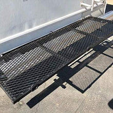 RV Bumper Storage Rack Heavy Duty American Made Steel with a Rust-oleum Rugged Truck Bed Liner Finish 60" x 20". Comes with 6 heavy duty "D" rings for securing your load. Mounting hardware included. Easy to install, attaches to 4"- 5" square bumper. Load tested at 500lbs, will easily handle a generator or anything else you need to carry. Made right here in the USA! Made from high quality heavy duty 1" steel frame, and expanded metal platform with a rugged truck bed liner finish. Please allow 1 week for delivery. Custom sizes are available at an extra cost, please inquire! Note: these racks are designed for RV's and trailers with body to bumper clearance of 4 1/2". If your bumper is closer to the body of the RV, some slight modification of the mounting holes may be necessary. Please allow 1 week for delivery. Here at RV City Surplus we have lots of surplus RV Parts. Check us out!