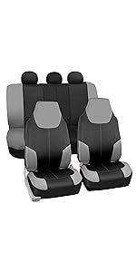 Unique Flat Cloth Seat Covers Complete Set For Most Sedans, SUVs, and Trucks Highback Style Neoprene Full Set Airbag Safe Raised Edge Multi-Use Cargo Tray For Home and Auto FH Group Textured Grip Steering Wheel Cover
