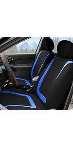 Style: Flat Cloth Pattern. Neoprene Highback. Cargo Tray. Textured Grip Steering Wheel Cover.