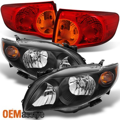 Fits 09-10 Corolla Black Headlights Lamps Replacement+Red Tail Lights Pair Combo