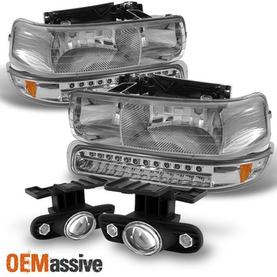 Fits 99-06 Silverado Suburban Headlights+LED Bumper Signal+Projector Fog Lights